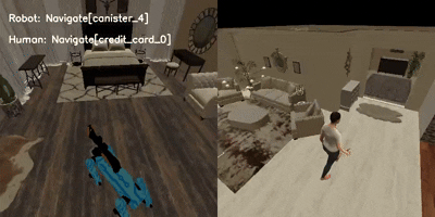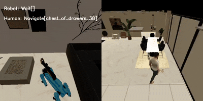 Human + OracleNav: robot follows the default PARTNR object-goal navigation policy.